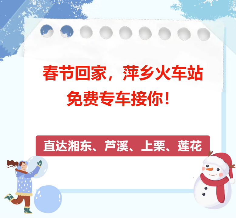 免费接送服务:所有返乡人员均可免费乘车,直达湘东区、芦溪县、上栗县、莲花县的县区中心!
