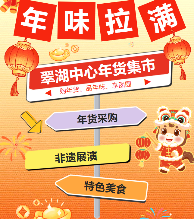 春节的脚步越来越近,最浓的年味藏在哪里?答案就在翠湖中心广场的新春年货节!红灯笼缀满枝头,烟火气扑面而来,这里将年货采购、特色美食、非遗展演、亲子游玩合成一团欢喜,一站式逛、吃、玩、购,让每一位市民都能沉浸式体验新春氛围感,赴一场热闹非凡的年味之约。