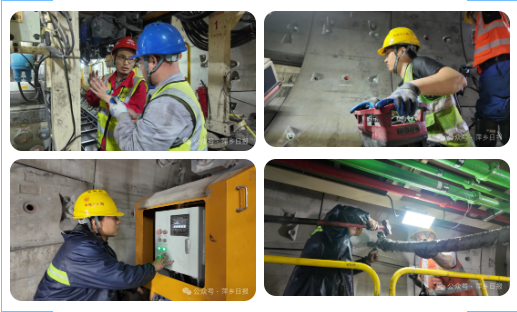 施工现场,40米长的“天蚕号”TBM掘进机各系统正在有序工作。“天蚕号”是江西水利首台全断面隧道掘进机,其开挖直径4.9米,堪称智能化“地下移动工厂”,单次循环可完成1.2米隧洞开挖、出渣运输、初期支护等全流程作业,为高效施工提供科技支撑。