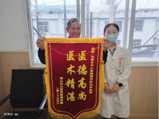 一面锦旗,承载着患者的信任与认可,更是我院中医科坚守医者初心的生动缩影。我院中医科始终以传统中医为根基,结合针灸、推拿、艾灸等特色项目,构建起全方位、个性化的中医药综合治疗体系,针对颈肩腰腿疾病、各种急慢性扭伤等慢性病,运用中药调理、针灸通络、推拿舒缓等多种方式,辨证施治,疗效显著。用实际行动传承岐黄之术、守护百姓安康,让传统中医药在基层医疗一线焕发新的生机与活力。