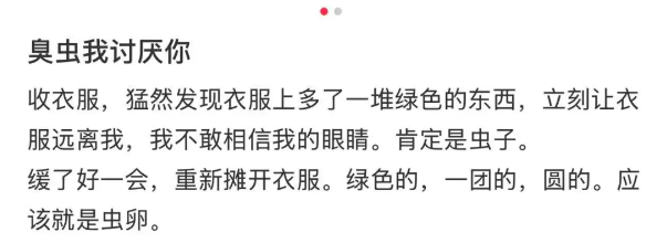 晾晒在阳台的衣物、毛巾质地柔软,潮湿度刚好,又带着淡淡芳香,便会吸引荔蝽在上面产卵。单纯的虫卵,其实并不会对人造成什么伤害。在收衣服时如果发现虫卵,不要用手直接碰触,可以用刷子或牙签把粘住的虫卵刷掉,之后再将衣物重新清洗干净即可。已经破壳了怎么办?千万别用手接触!荔蝽在受到惊吓时,会分泌并喷射带有腐蚀性的臭液。