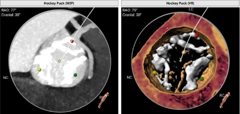 术前CT三维重建显示,患者主动脉瓣钙化体积高达1178mm³