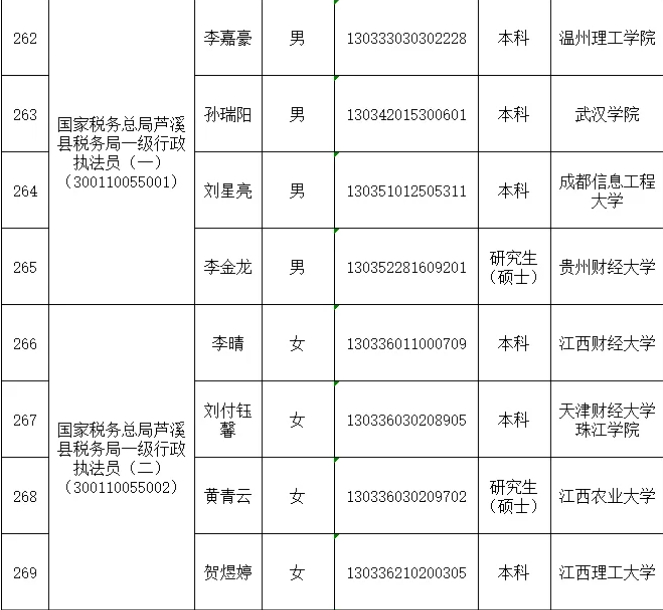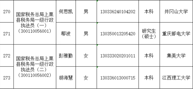 根据中央机关及其直属机构2026年度考试录用公务员工作有关要求,经过笔试、面试、体检和考察等程序,确定黄昌豪等892人为国家税务总局江西省税务局拟录用公务员,现予以公示。公示期间如有疑问,请向国家税务总局江西省税务局反映。