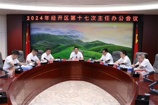 8月3日,2024年经开区第十七次主任办公会议召开,传达学习习近平总书记近期重要讲话精神和中央重要会议精神,研究经开区贯彻落实意见。区党工委副书记、管委会副主任刘波主持。