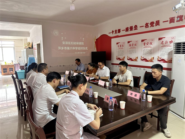 为进一步加强健康安源建设,2024年7月29日上午,安源区妇幼保健院与萍乡市第六中学共同举行结对合作签约仪式。