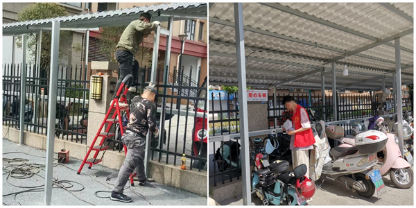 随着辖区内电动车数量不断增加,如何高效解决车辆乱停放、不规范充电的问题,成为横龙街回应群众关切、破解急难愁盼的重要抓手。横龙街以群众需求为导向,通过多次实地走访,广泛征询居民意见建议,详细了解辖区居民相关需求,不断优化设计方案,按照“集中停放、集中充电、集中管理”的工作思路,在小区内现有的空地上加装电动车充电棚。