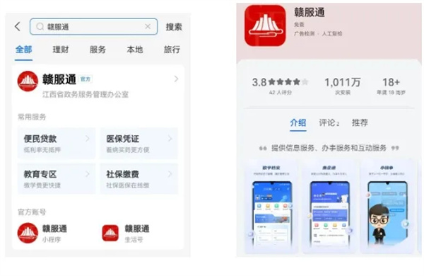 1.应用市场下载“赣服通”APP或支付宝搜索“赣服通”进入平台。