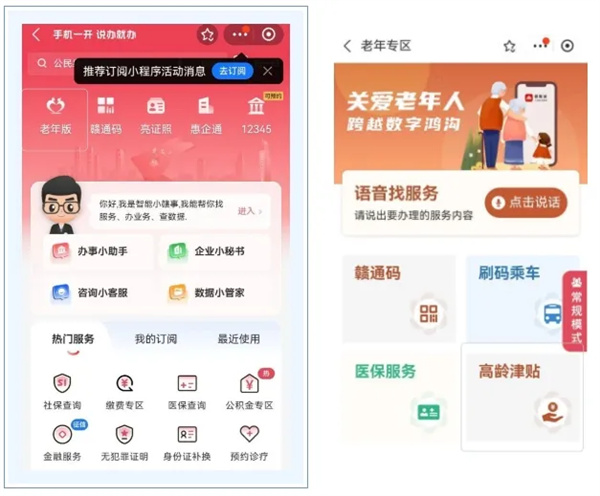 2.进入赣服通首页,点击老年版,选择高龄津贴服务。