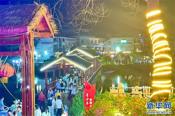 随着夜幕降临,江西省萍乡市上栗县“泉之源”田园综合体游人如织,热闹非凡