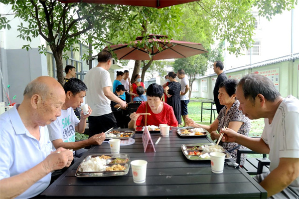 “年纪大了,有时候炒菜丢三落四的,炒得没有社区食堂那么好吃,社区食堂的饭菜低糖、低脂、少盐、少辣,非常适合我们老年人,而且还经济实惠!”凤凰街凤凰池社区居民易耀元刚从安源红邻里之家社区食堂吃完午饭出来后满足地说道。