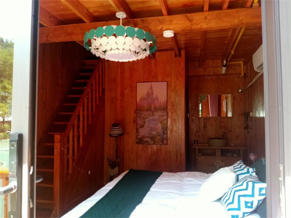 独特的木质构造和室内天然的原木色,让人有一直身处森林的沉浸感。白雪公主与七个小矮人、卖火柴的小女孩、王子与公主等主题画面的呈现,仿佛置身于童话世界。踏上台阶钻进树屋,白天看蓝天白云,夜晚看繁星点点,闭上眼睛就是大自然的协奏曲。