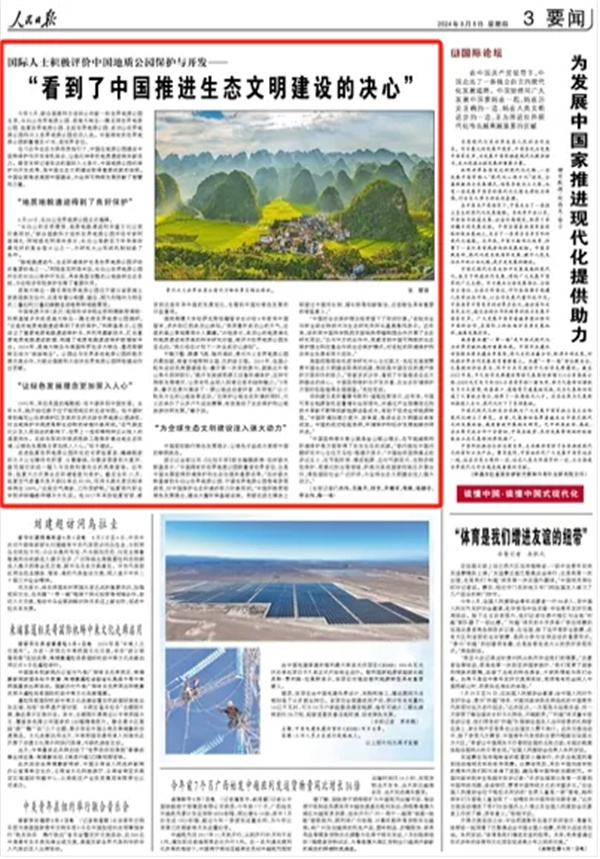 《人民日报》刊发武功山世界地质公园采访内容——国际人士积极评价中国地质公园保护与开发“看到了中国推进生态文明建设的决心”