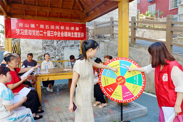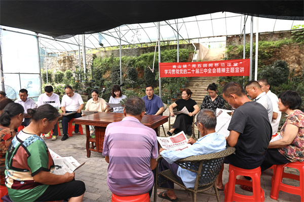 为将党的二十届三中全会精神宣进千家万户并落到实处,青山镇组建了一支由党员干部、青年党员以及当地知名乡贤共同参与的“党声传递”宣讲团。这支宣讲团队伍结构多元,既有经验丰富的老党员,能够深入浅出地解读政策精髓;又有充满活力的青年党员,能够用更贴近年轻人的方式传递信息;更有深受村民爱戴的乡贤,他们扎根乡土,了解民情,能够用生动的语言和实例拉近与村民的距离。宣讲团利用“周五田间移动课堂”特色平台,将宣讲活动带到田间地头、生产一线,与村民们面对面坐在一起,通过讲故事、拉家常、谈变化的宣讲形式,让党的二十届三中全会精神深入人心。