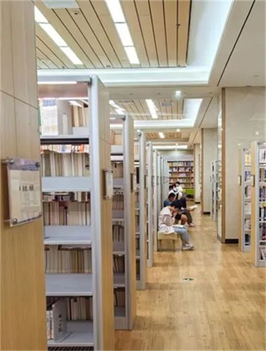 图书馆内,相关提示牌醒目亮眼,功能区分区明确,硬件设施配套完善,为前来的市民们提供了便利。这里不仅有免费的空调、WiFi、饮水等服务,还根据读者们不同的需求,区分借阅室和阅读室等功能区域,除此之外还设立了专门用餐区域供读者们解决用餐问题。