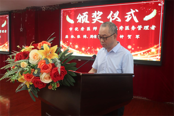 随后副院长张运萍宣读了表彰决定。院领导先后为“市级优秀医师”“院级优秀医师”进行了颁奖。获奖代表钟贺军、张博、周倩云依次上台发表感言,他们分享了自己在医疗工作中的心路历程和感人故事,情真意切的发言,表达了对医学事业的热爱和对患者健康的责任,赢得了在场人员的阵阵掌声和共鸣。
