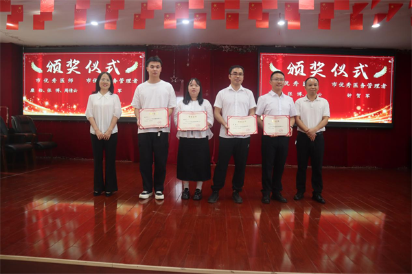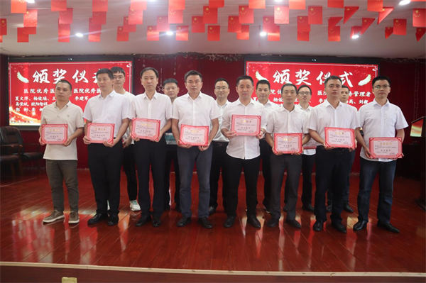 院领导依次为获得者颁奖,并合影留念。获奖医师及科室代表手捧荣誉证书,脸上洋溢着自豪与喜悦。
