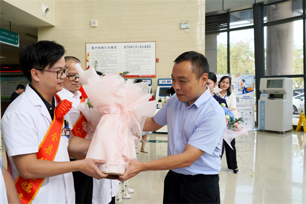龙萍一行先后来到县人民医院、宣风镇中心卫生院等地,每到一处,龙萍都与医务人员代表亲切握手,送上鲜花和节日祝福,感谢大家以实际行动诠释医者仁心,为护佑群众健康、推动卫生健康事业发展作出积极贡献,并勉励大家继续弘扬新时代医疗卫生职业精神,以高尚的医德和精湛的医术,筑牢人民健康防线。