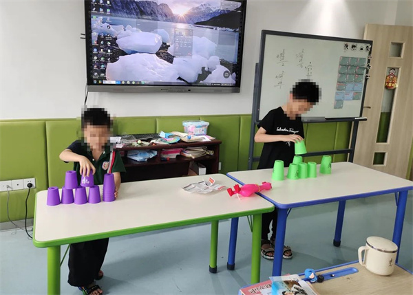 邓希介绍,经过一定时间的训练,孩子们能开口简单朗读,多动症孩子逐渐养成安静坐的习惯,还有些孩子可以由特教老师牵着慢慢地行走。