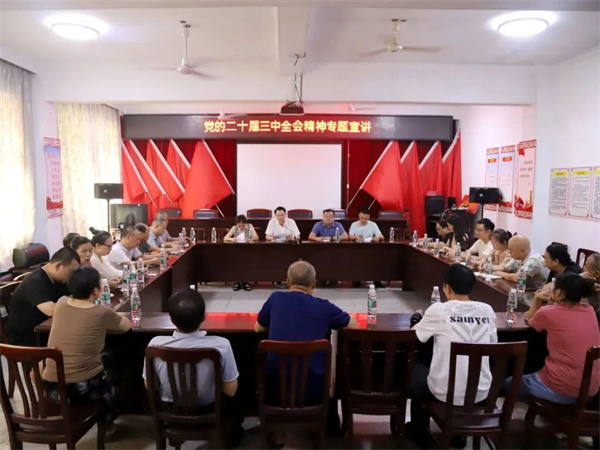 凤凰街党委书记欧阳本奇用乡音俚语解说新思想,解读新政策,传递新讯息,村民们喜听爱看易接受,时不时对自己关心的教育、医疗、就业等方面的政策措施进行提问,欧阳本奇和村干部便现场为村民答疑解惑。一问一答间,党的二十届三中全会精神如同一股强劲的思想之风,吹遍每一个角落。