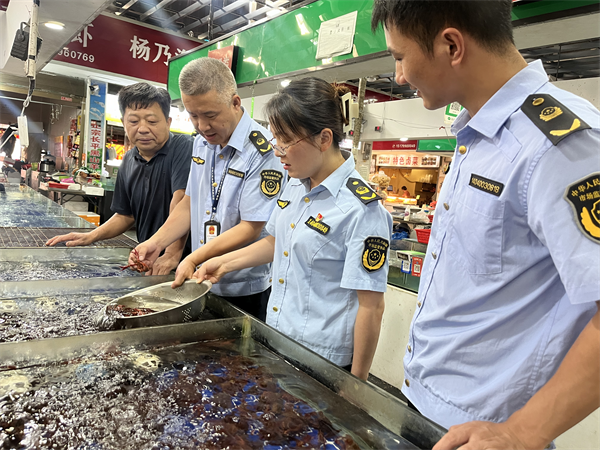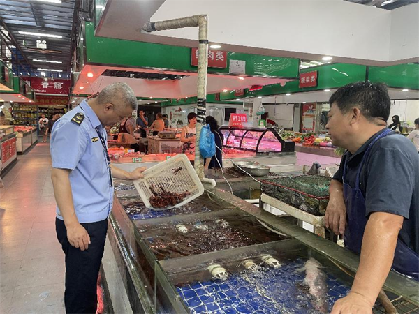 执法人员对随机抽取的农贸市场水产品销售摊贩、海鲜水产品销售门店等市场主体进行了检查,检查未发现“潜江龙虾”地理标志证明商标、专用标志的侵权行为。