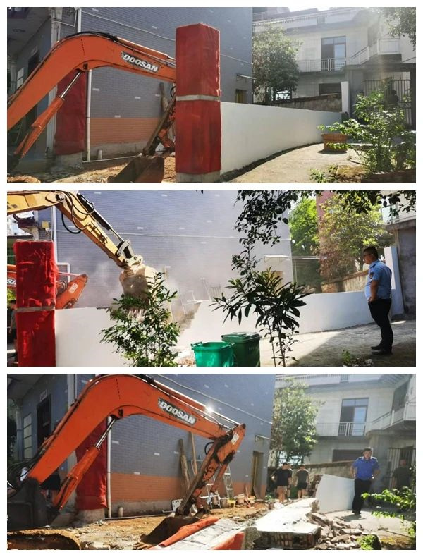 为严厉打击违法违规建设行为,依法整治乱建抢建现象,近日,上栗镇综合执法大队联合镇应急分队对辖区内四处违规违法建筑进行依法拆除。