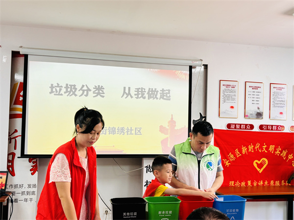 为进一步推进萍乡市生活垃圾分类工作上台阶、上水平,加强以党建引领基层治理为抓手,以居民委员会、业主委员会、物业服务企业、志愿者(党员)、居民“五位一体”联动机制的形式推进我市生活垃圾分类工作。8月23日萍乡市城乡环境综合治理中心联合安源区城乡环境治理中心和后埠街道锦绣社区,开展“我是党员我带头,垃圾分类我先行”的主题党日活动,认真落实“党员报到”制度,深化“我为群众办实事”工作。