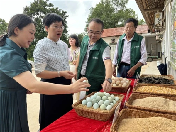 郑锐一行对整个鸡场及周边环境、饲料配方原材料进行了考察,对养殖基地建设在茶树林下,让鸡既有宽松且优美的环境,又有杜仲配方饲料喂养。她希望公司将“篮物工社”品牌的杜仲土鸡和土鸡蛋做成高端食材,代表湘东区走出萍乡走向全省乃至全国。