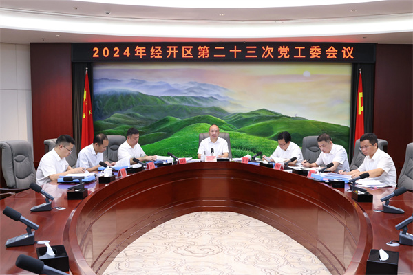 8月27日,2024年经开区第二十三次党工委会议召开,传达学习习近平总书记近期重要讲话重要指示精神,研究经开区贯彻落实意见。市委常委、区党工委书记杨博主持会议。区领导魏逵、兰子建、李锦辉、李秋林、朱敏、黄好出席。