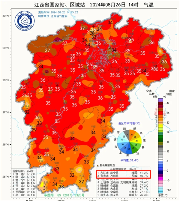 江西局地还出现了41.2℃的气温