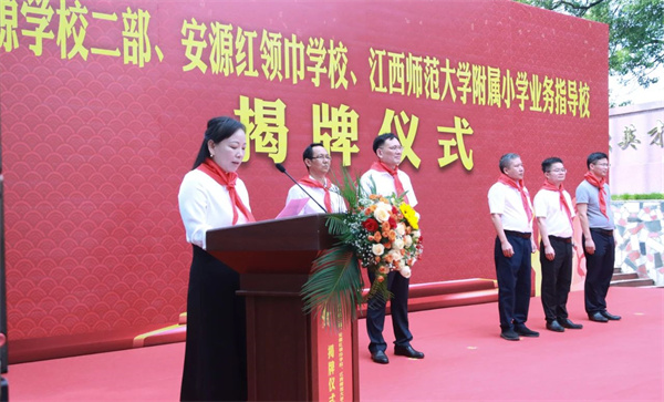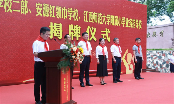8月28日,安源区举行安源学校二部、安源红领巾学校、江西师范大学附属小学业务指导校以及燎原学校新校区揭牌仪式。区委书记李水清,江西师范大学化学工程学院系主任严楠,区委常委、宣传部部长邬思海,副区长廖志群、江西师范大学附属小学校长钟事金等有关领导分别出席仪式。