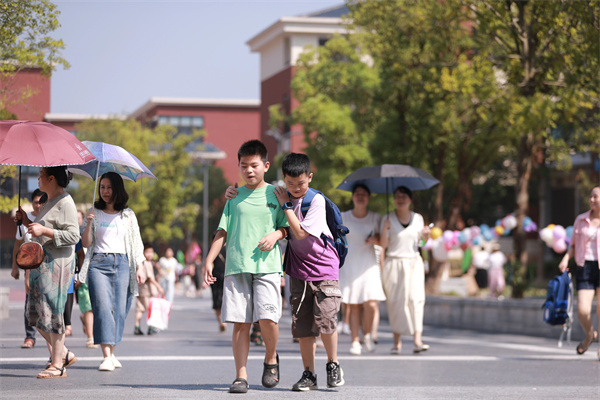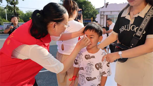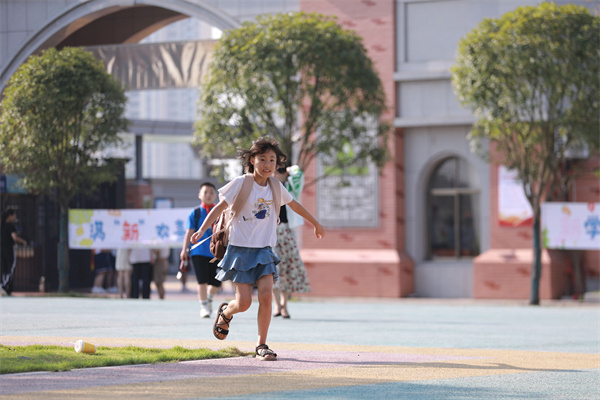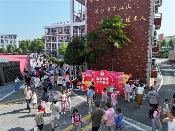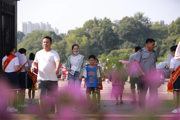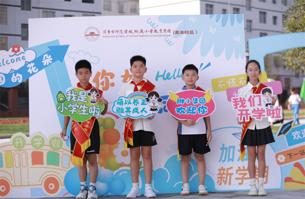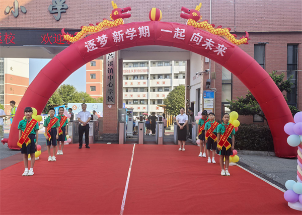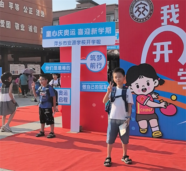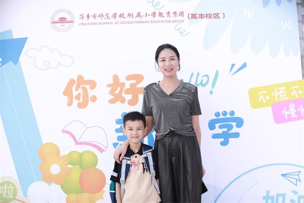 芦溪镇中心学校在校门口设置了大型的气模拱门,高年级学生志愿者身着整洁的校服,佩戴鲜艳的绶带,满脸笑容地迎接新生和家长的到来。“这里和幼儿园有点不一样,操场比幼儿园的宽阔,教室比幼儿园的更加明亮,在这里我还交到了很多新朋友。”许多一年级的孩子兴奋地说。