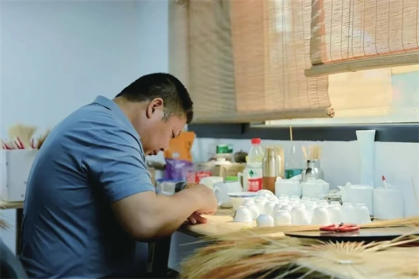 走进湘东镇江口艺术村三石竹艺博物馆,只见工匠们捏着直径不足1毫米的竹丝在瓷胎上专心致志地编织,精湛的手艺让人惊叹不已。