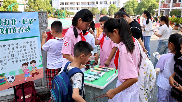 此外,为给孩子们创造一个健康清朗的成长空间,学校还通过发放“绿书签”、宣传资料、在“扫黄打非·护苗2024”的横幅上签名等形式,宣传有害出版物和不良信息的危害性,让“护苗”理念在家长和孩子们心中生根发芽。