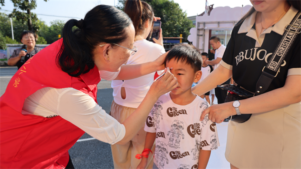 走进上栗镇胜利小学,只见新生在家长的陪同下,带着满满的憧憬,戴上状元帽,穿过“启智门”,随后由老师扮演的“魁星”手持朱笔,在新生额头正中点上红痣……仪式感满满的新生入学仪式,让孩子们感悟勤学善思、尊师孝亲、崇德立志的中华优秀传统文化。
