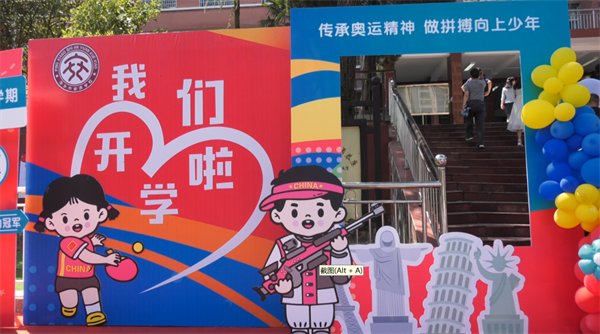 在安源学校二部,记者看到校园外,家长们带着孩子,脚步匆匆却又满含期待。走进校园,热闹的场景扑面而来。一条醒目的红毯直铺向教学楼,两旁还以传承奥运精神为主题设置了迎新打卡区,让同学们走进校园就可以和自己喜欢的“奥运形象”展牌拍照打卡,鼓励同学们从奥运精神中汲取力量,树立榜样,心怀理想,做拼搏向上少年,迈向更加美好的未来,不少家长拿出手机记录下孩子们重要的入学时刻。老师们精心布置了教室,黑板上写着“我们一年级啦”“欢迎你”等话语,以及新学期的寄语和期望。