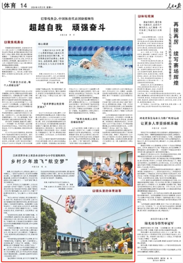 《人民日报》报道上栗县赤山镇中心小学航模运动特色教育