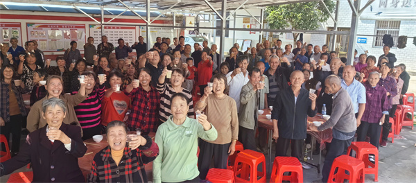 在南坑镇圭田村的新时代文明实践站,一场温馨的重阳节聚会正在如火如荼地进行。70多位年过六旬的老人,白发苍苍却精神矍铄,围坐一堂,共享佳肴,谈笑风生,脸上洋溢着幸福与满足的笑容。实践站的志愿者们忙碌而有序,为老人添茶倒水,细心询问每位老人的需求,确保他们在这特殊的日子里感受到家一般的温暖。空气中,美食的香气与敬老之情交织,共同编织成老人们心中难忘的重阳节美好回忆。