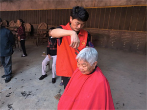 “头发这样一剪,舒服多啦,谢谢你啊,小伙子。”平吉村邀请了理发师和医生来为村里老人进行理发和义诊,医生们不仅为老人们测血压,进行听诊,还贴心的向老人普及了常见疾病的预防和保健知识。