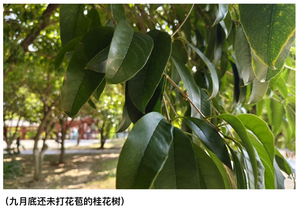 往年在中秋节前后就会随着那一轮明月而来的桂花香味似乎在今年“迟到”了,直到九月底的时候萍城的桂树都未添秋妆,公园广场、城区内部分有桂花的路段和小区里,部分桂花树都未曾有要开花的迹象,枝桠上甚至难觅桂花的花芽。哪怕现在桂花盛放,也还是让人担心萍城桂花的生长情况。