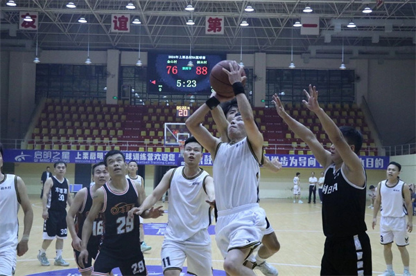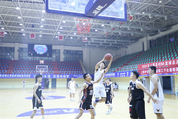 决赛现场,双方球员你来我往、互不相让,单手上篮、后仰跳投、三分远投等高难度动作频频出现,两队攻防转换迅速、比分紧咬不放,在奋勇拼搏中演绎着篮球运动的魅力与激情。