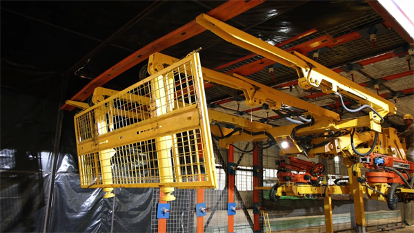 蓝翔重工的现代化厂房内,操作人员轻触操纵杆,钻车即刻响应,前端折叠支护平台上下摆动、精准流畅。随着各项参数的最终确认,这台代表着最新科技成果的钻车即将启程,发往宁夏宝丰能源集团,为其高效、安全的掘进作业提供有力支持。这款单轨液压锚杆钻车的问世,彻底改变了传统掘进作业模式。以往,巷道掘进采用“先掘后支”的方式,掘进机和锚杆钻车在巷道底部频繁错车,不仅效率低下,而且安全隐患大。蓝翔重工通过技术创新,将锚杆钻车置于巷道顶部的单轨上运行,与下方掘进机协同作业,实现了“一上一下,同时施工”的高效作业模式。特别是“随掘随支”的新工艺,更是对掘进方式的一次革命性突破。