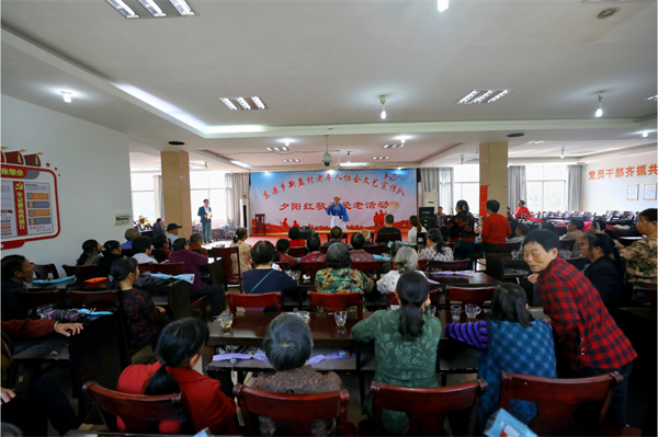 两周前,当村干部打来电话邀请他参加重阳节文艺汇演时,他欣然答应,他说:“这是一次宣传非遗文化的好机会,我们一定参加!”。随后他立刻召集了村里的表演队伍告知参演事宜,得到了队员们的积极响应。
