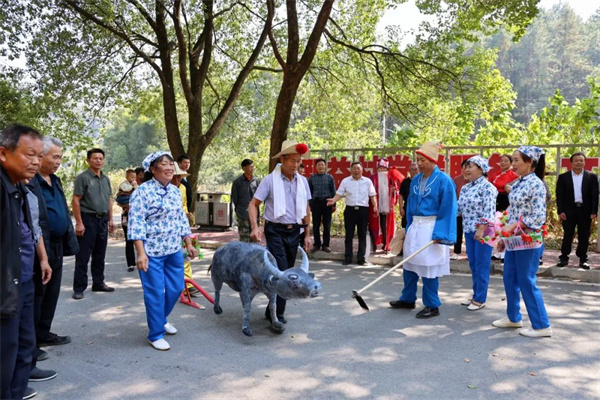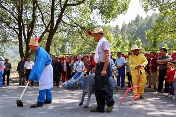 “下一个节目,非遗民俗舞蹈——牛带茶灯!”近日,在上栗县东源乡新益村村部,随着主持人的介绍声响起,一位身着粗布衣衫的“农民”赤着双脚走上舞台,只见他把锄头往肩上一扛,清了清嗓子,醇厚的嗓音如同古老的歌谣在现场响起。