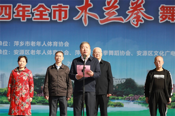 李水清在活动中致辞,他说,萍乡市老年人体育协会在安源世纪广场隆重举办全市老年人木兰拳舞蹈大赛活动,是贯彻落实习近平总书记关于老龄工作的重要指示精神的具体实践,也是全市老年朋友们老骥伏枥、老当益壮精神风貌的生动展现。近年来,安源区作为国家积极应对人口老龄化重点联系城市,聚焦老年人对美好生活的期待,加大制度创新和政策供给,全方位建设老年友好型社会。下一步,安源区将一如既往传承弘扬“老吾老以及人之老”美德,办好实事,打造更多带动能力强、普及程度高、社会影响大的老年人体育健身项目,促进老年人身心健康,增进老年人福祉。