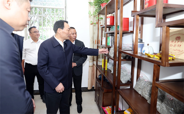 荷尧镇荷尧村积极发展“一户一品”庭院经济,在村民的庭院中建起藤茶、辣椒酱、花卉苗木等手工作坊,成为村民新的收入来源。熊运浪实地踏看村容村貌,走进村民家中,详细询问庭院经济发展成效、收益情况。他要求,要立足本土特色资源,积极开发生态观光、休闲度假、乡村研学等旅游产品,加快推进“四融一共”和美乡村建设,持续提升农村人居环境。要通过线上线下融合发展的模式,进一步拓宽产品销售渠道,推动庭院经济发展,努力实现群众稳定增收。