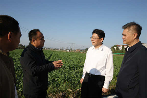 在升坊镇石江村萝卜产业基地,举目皆绿,萝卜长势喜人、丰收在望。刘烁来到田间地头,仔细察看田地土壤、萝卜生长情况,并详细了解乡村产业基地工作开展情况。他指出,产业振兴是乡村振兴的基础,要充分发挥基地“村集体+公司+基地+农户”模式,用足用好各项支农惠农政策措施,健全种粮农民收益保障机制,切实提升农民种植的积极性,推动农业增效益、农民增收入、农村增活力。要全面夯实粮食安全基础,大力发展优势特色产业,以产业振兴推动乡村振兴。