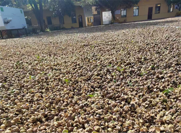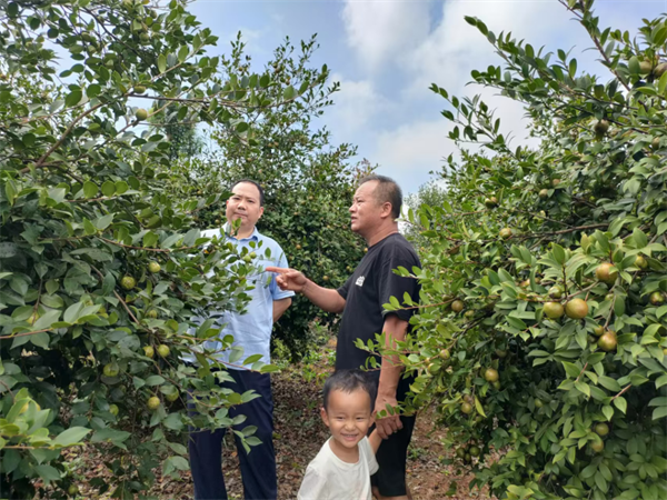 找到钟显民的时候,他正仔细察看今年油茶籽的品相,看见来人了,他热情地向我们介绍着油茶产业的点点滴滴,“你们看,这批油茶树可是2009年就种下啦。那时候,这里的土地可没现在这么肥沃,我们花费了数年时间来治理土壤,精心培育这些油茶。好不容易啊,到了2016年,油茶开始挂果了。如今油茶树也进入了丰产期,特别是今年上半年雨水足,产量大幅攀升,品质也非常不错,现在农场里种了600 多亩油茶,今年预计鲜果产量可达30万斤,可榨茶油1.2万斤,产值达70万元,收入还是很可观的,下一步,拟建成高产油茶示范基地。”钟显民边说边拿起一颗油茶果,脸上洋溢着欣慰的笑容。