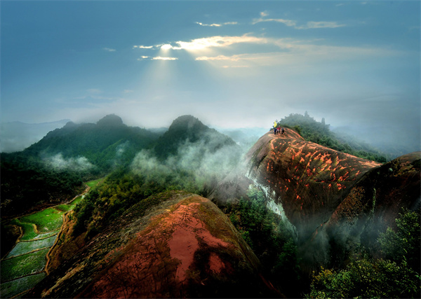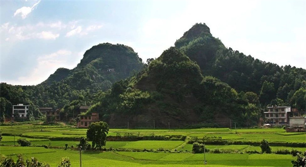 东桥水好,山更好。东桥的山各有特色,独有神韵。镇西南的钟鼓寨由三座山组成。其一形如金钟,名钟山,其二形如军鼓,名鼓山,其三形似香炉,名香炉寨。三山合称钟鼓寨,非寨而山。三山成鼎足之势,矗立围绕在草水河边。除却钟鼓,还有以狮虎象凤凰等命名的山或村庄。走过村落,不时看到村头竖有“狮形村”“象形村”等碑。