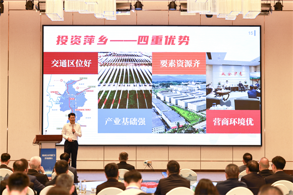 刘烁通过萍乡“四张名片”和投资萍乡“四重优势”向与会企业家推介萍乡。刘烁说,萍乡的第一张名片是“工运摇篮”,在萍乡这片红色热土上,毛泽东、刘少奇、李立三等老一辈无产阶级革命家领导了震惊中外的安源路矿工人大罢工。萍乡的第二张名片是“户外天堂”,萍乡武功山作为“青春之山”得到了众多年轻人的青睐,常年在携程等平台发布的山岳景区榜单中位居前十。萍乡的第三张名片是“花炮故里”,花炮产业在萍乡有着千年的历史,走出了国门,走向了世界,花炮祖师李畋也出自萍乡上栗。萍乡的第四张名片是“中国辣都”,地处赣湘交界的萍乡叠加了“辣不怕”和“怕不辣”的双重基因,萍乡的辣是本质辣。投资萍乡有着交通区位好、产业基础强、要素资源齐、营商环境优“四重优势”。萍乡链接四方,投资萍乡,就能占领“江”“湖”、辐射江南、贯通南北。萍乡产业兴盛,在41个工业行业大类中拥有33个,拥有高素质的产业工人队伍,深耕萍乡就是深耕实业。萍乡生产要素齐备,工业原料丰富,生产原料本地化,能够就地取材,是湘赣边区域“成本洼地”。萍乡营商环境优,实施亩均、低碳、科技、人均“四个论英雄”综合评价机制,分类分档给予“真金白银”的支持。刘烁希望广大企业能够通过走进萍乡、了解萍乡,进而携手合作,成为与萍乡共同成长的伙伴,在萍乡这块祥瑞之地收获成功。