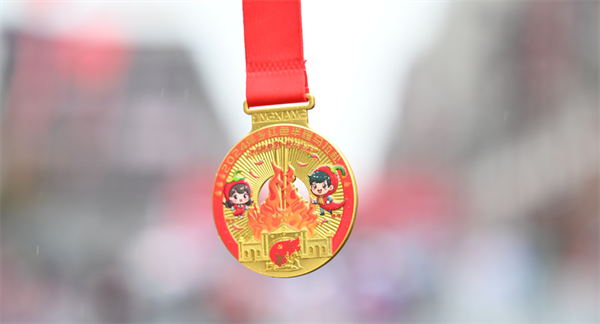 今年与往届不同,赛事以“品味中国辣都萍乡 争先领跑辣红安源”为主题,通过马拉松运动传承和弘扬红色安源革命精神。奖牌设计也别具匠心,中间部分镌刻着安源地标性打卡地——总平巷,两边加入了“中国辣都萍乡·辣红安源”的卡通形象“啦啦”和“嘟嘟”,既展现了安源深厚的历史文化底蕴,又彰显了萍乡人民在风雨中前行的坚韧与热情。赛事还融入了慈善、环保等社会公益理念,让这场比赛更加意义非凡。